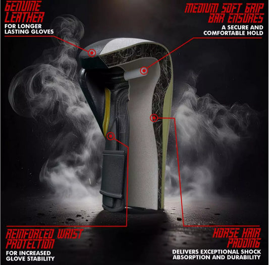Gants de boxe Süvari, Crin de cheval authentique, Jaune et Noir, Hit N Move®